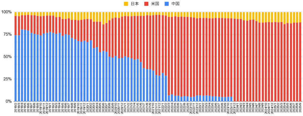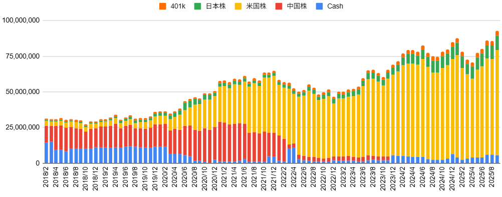 - 資産割合推移(米国株を追加した2018/2~、現金は含まない)