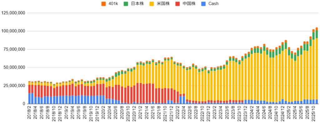 資産運用の方は1億をあっさり割るかと思いきやGemini 3.0でGoogleが絶好調ということで終わってみれば先月末よりプラスでした。